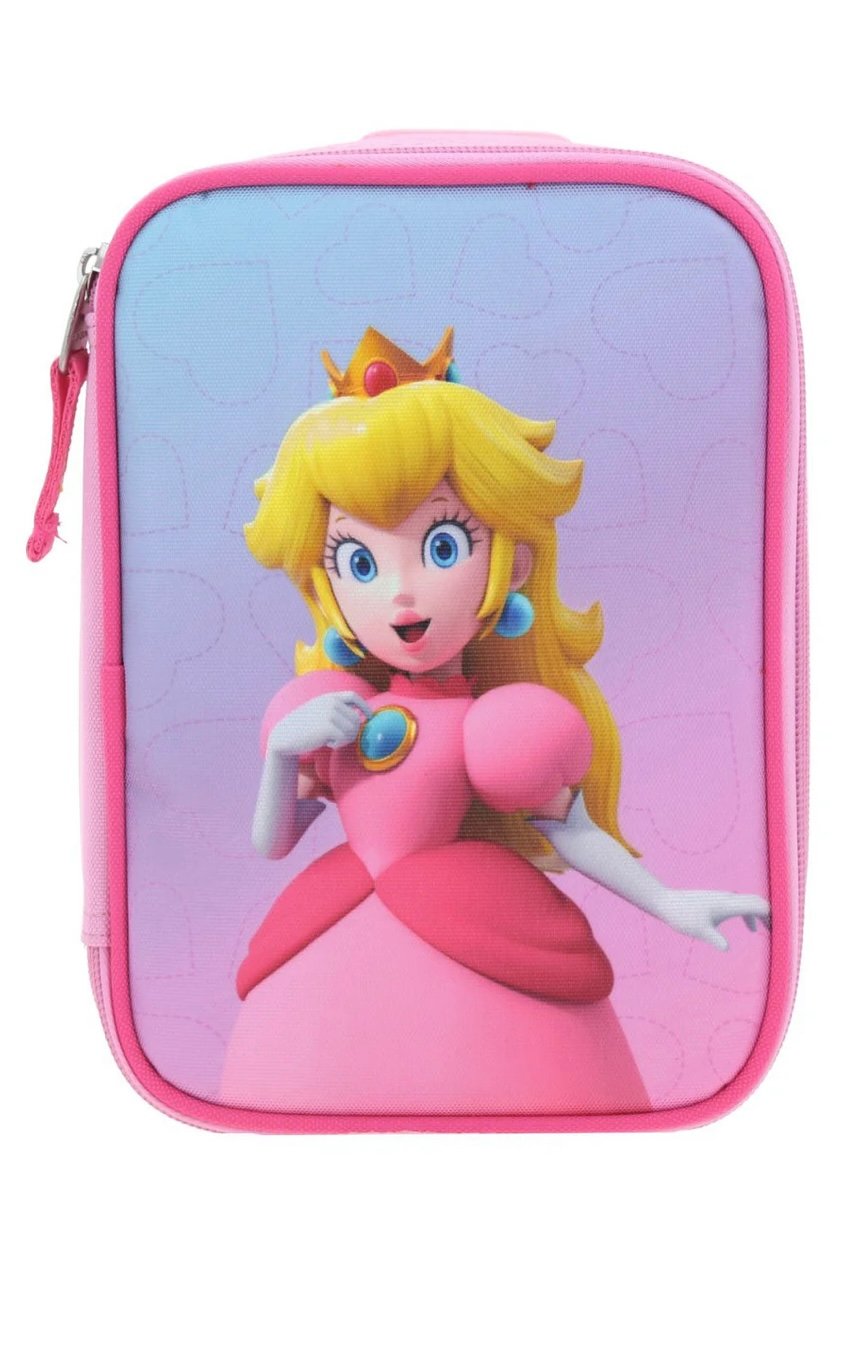 Lapicera de Princesa Peach para organizar tus lápices y colores, con doble división interna, compacta y fácil de llevar a todas partes. Contiene separador para 50 lápices o colores.